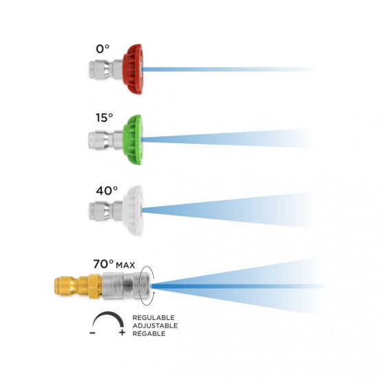 - Boquillas incluidas: regulable, roja 0º, verde 25º, blanca 40º