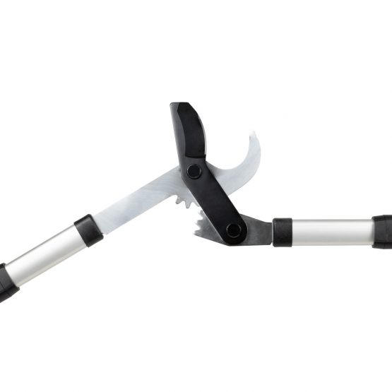 La CH-77 es una tijera de poda de 2 manos tipo bypass con mango telescópico y sistema de cremallera que multiplica la fuerza para cortar con menos esfuerzo.